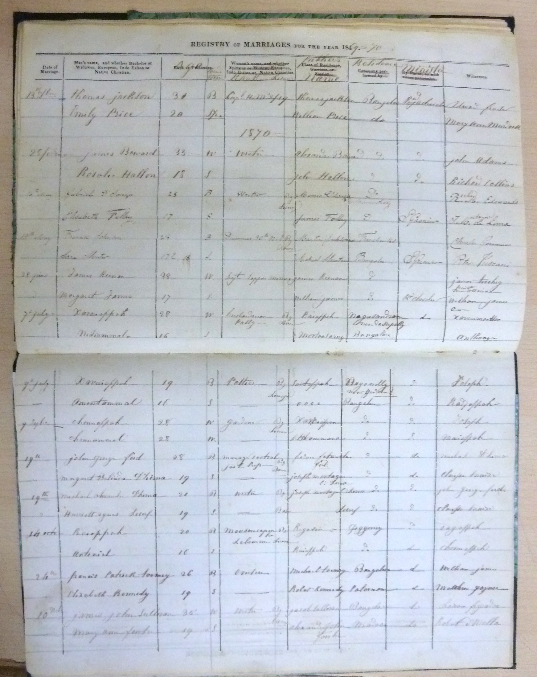 St Patricks RC Bangalore Madras - Marriage Registers