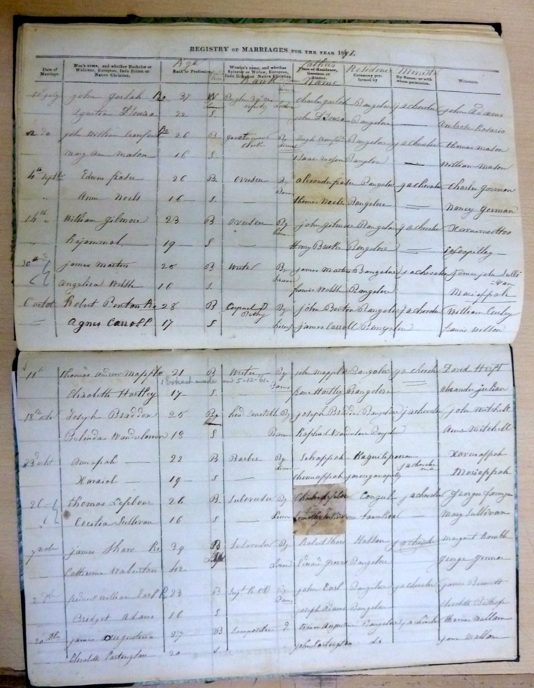 St Patricks RC Bangalore Madras - Marriage Registers