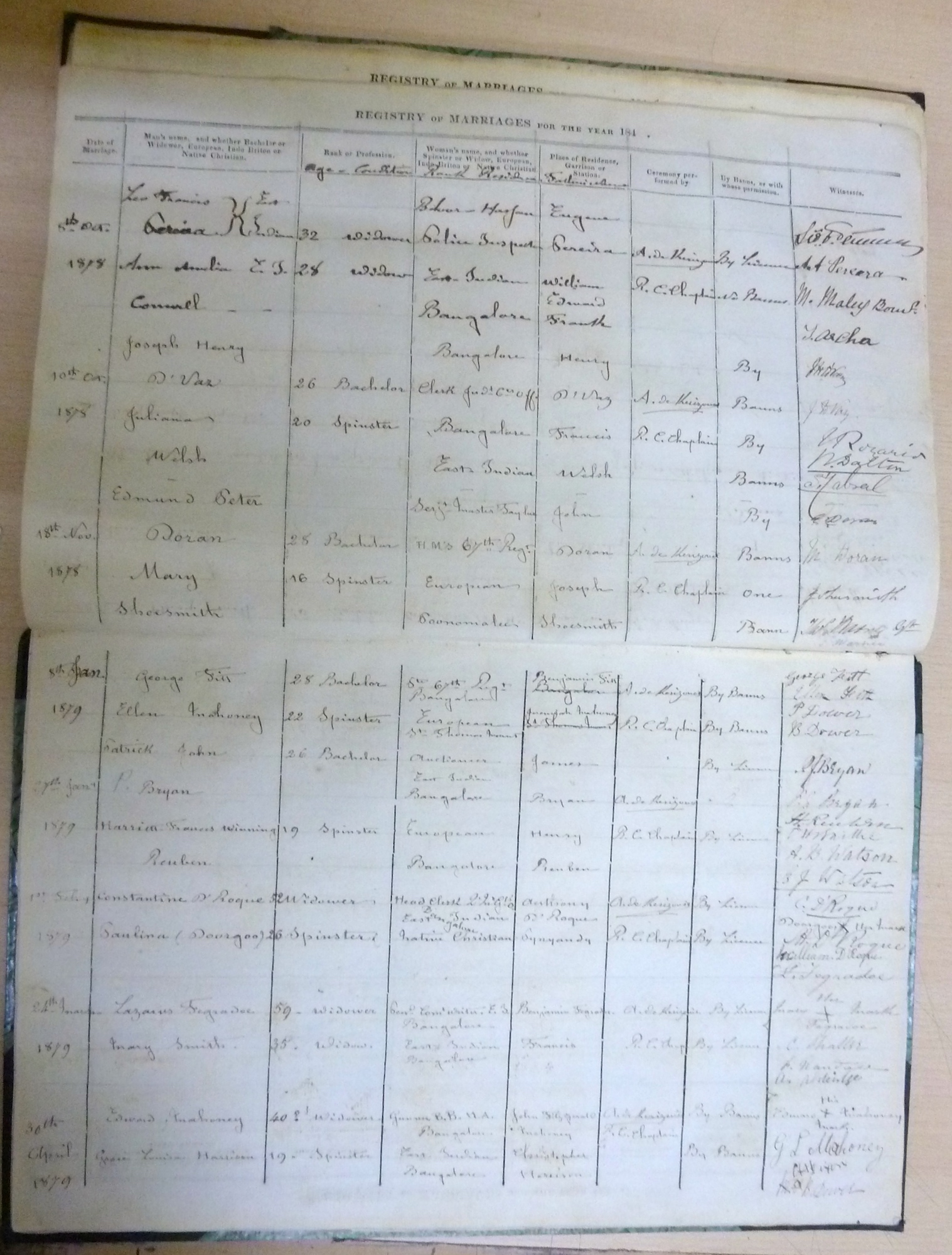 St Patricks RC Bangalore Madras - Marriage Registers