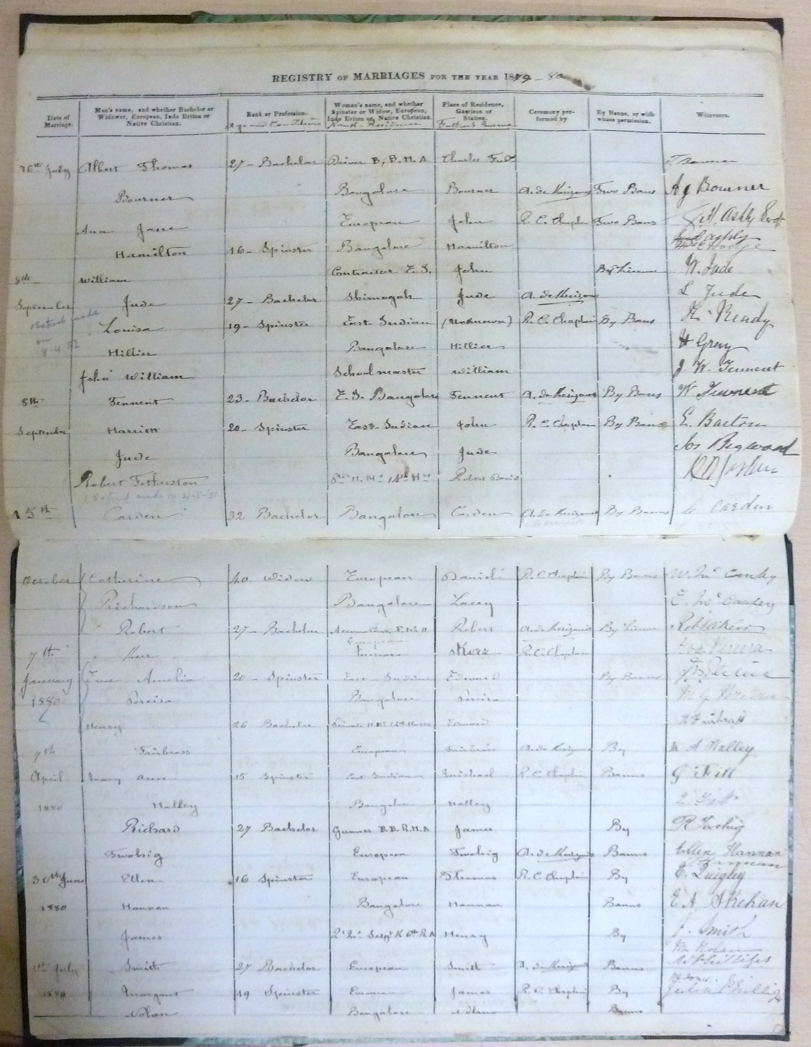 St Patricks RC Bangalore Madras - Marriage Registers