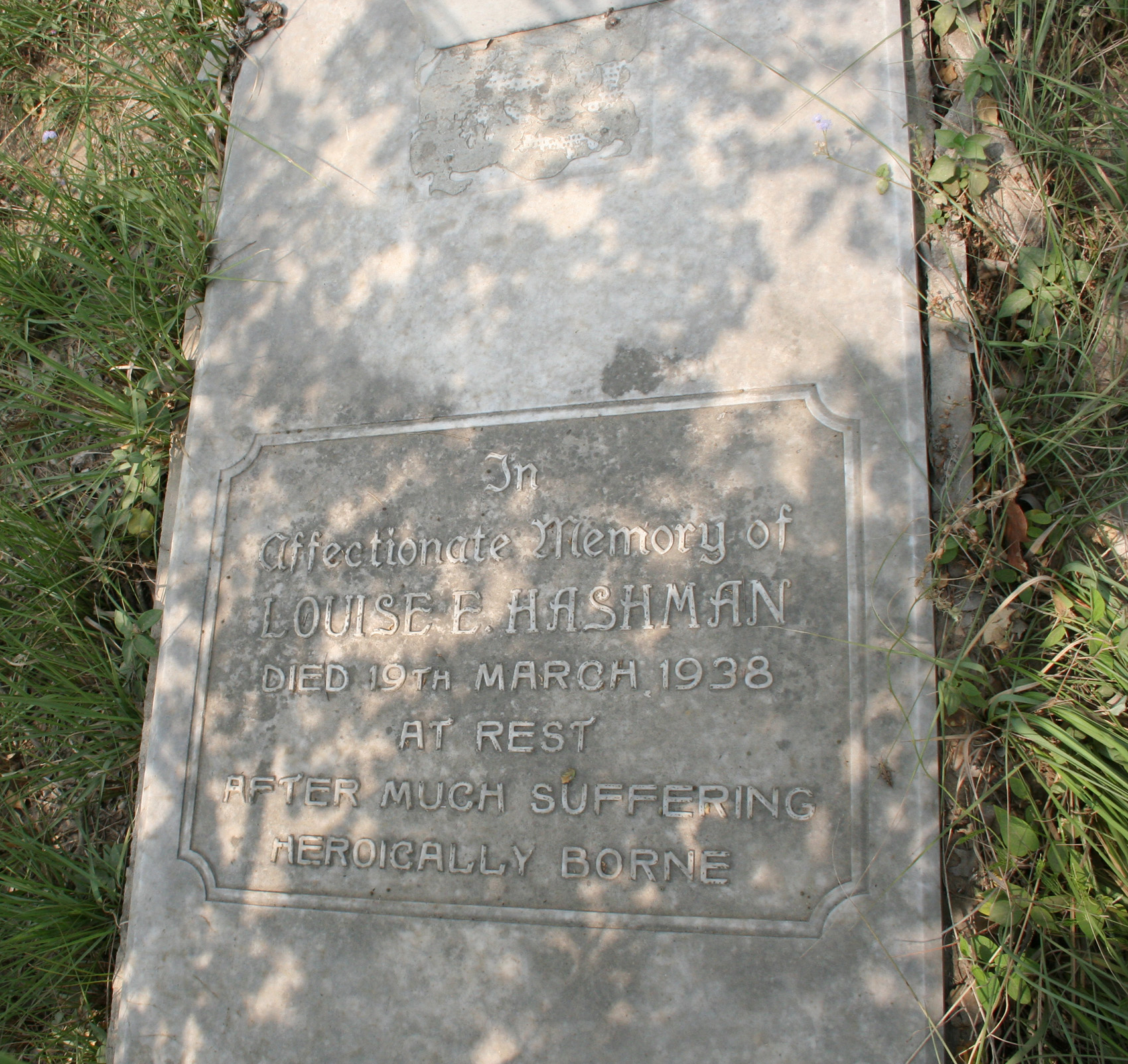 Image title: Hashman, Louise E., gravestone at Nishatganj File size: 994,410 bytes