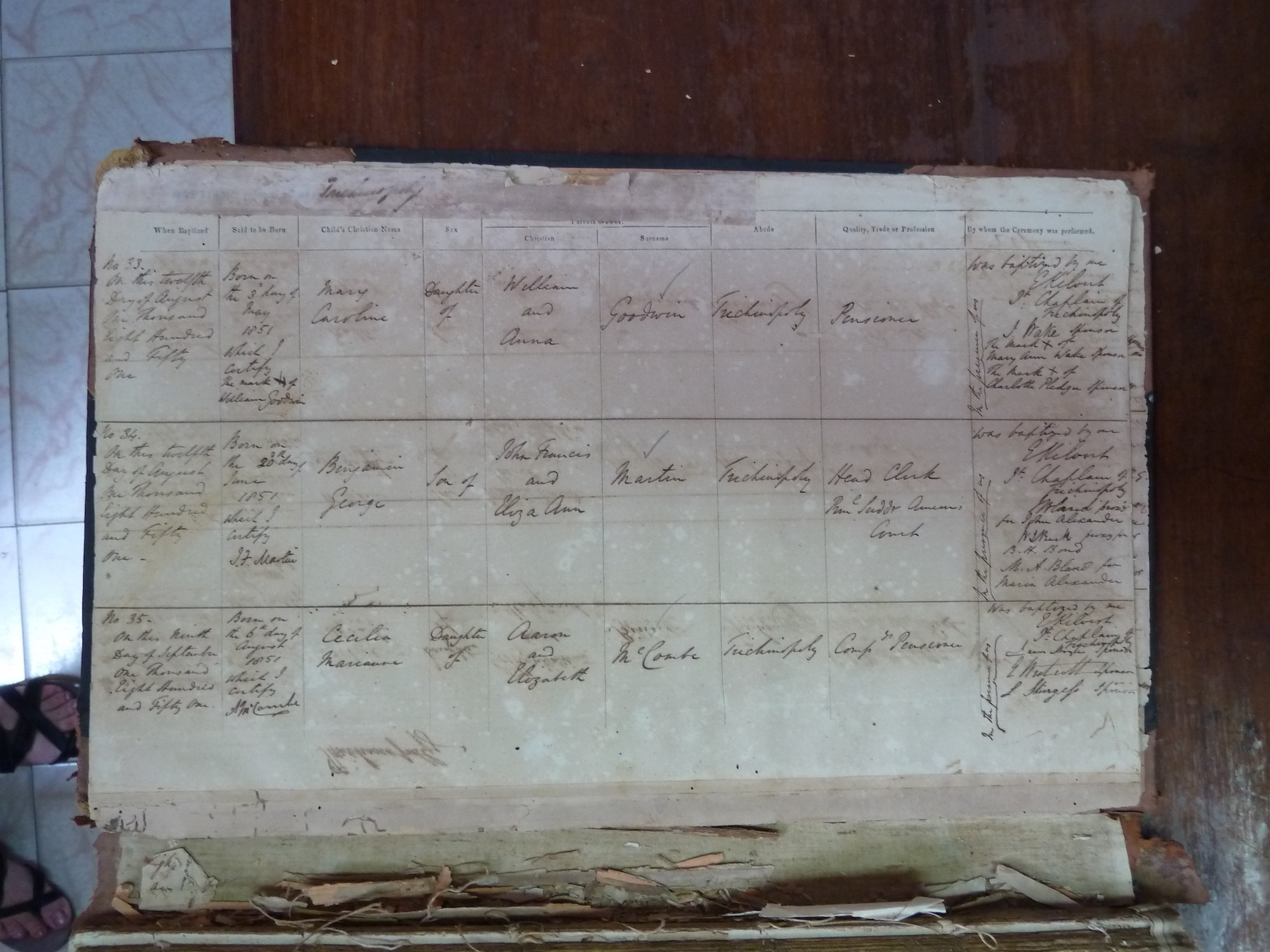 St Johns Church Trichinopoly - Baptismal Registers