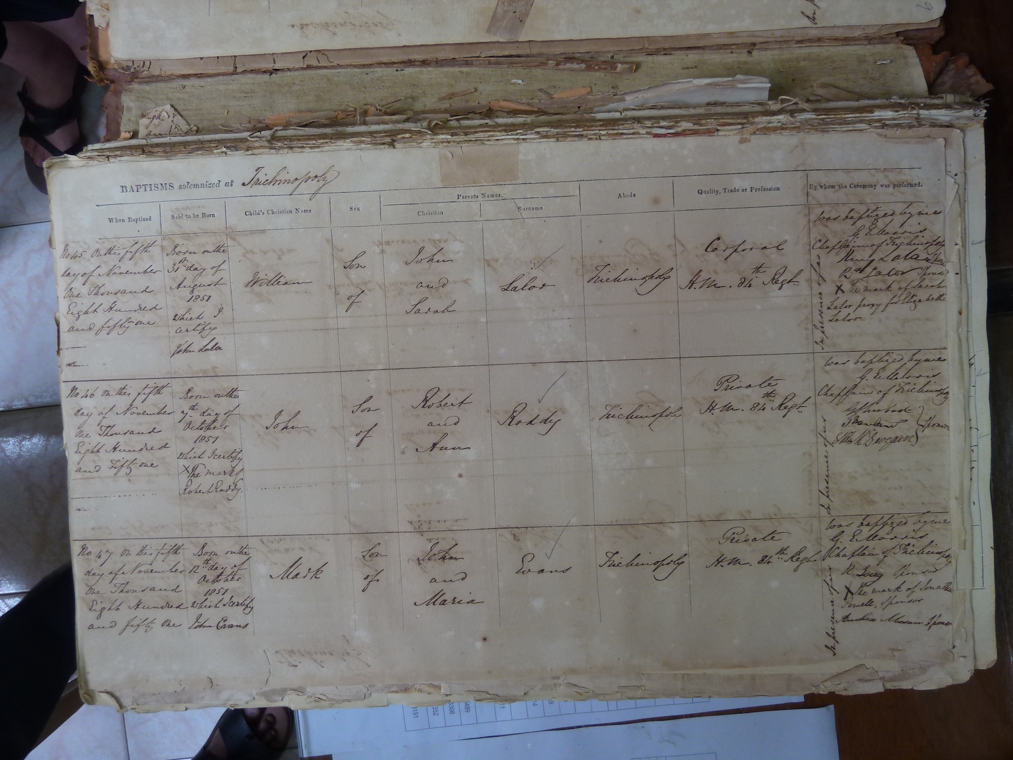St Johns Church Trichinopoly - Baptismal Registers