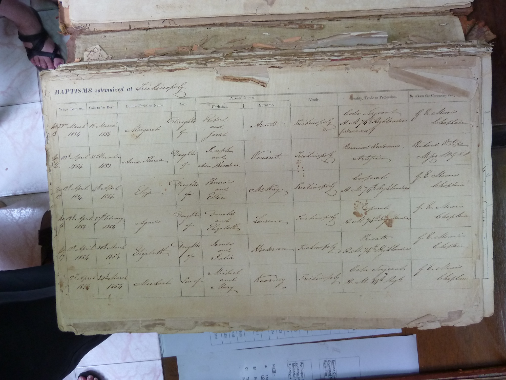 St Johns Church Trichinopoly - Baptismal Registers