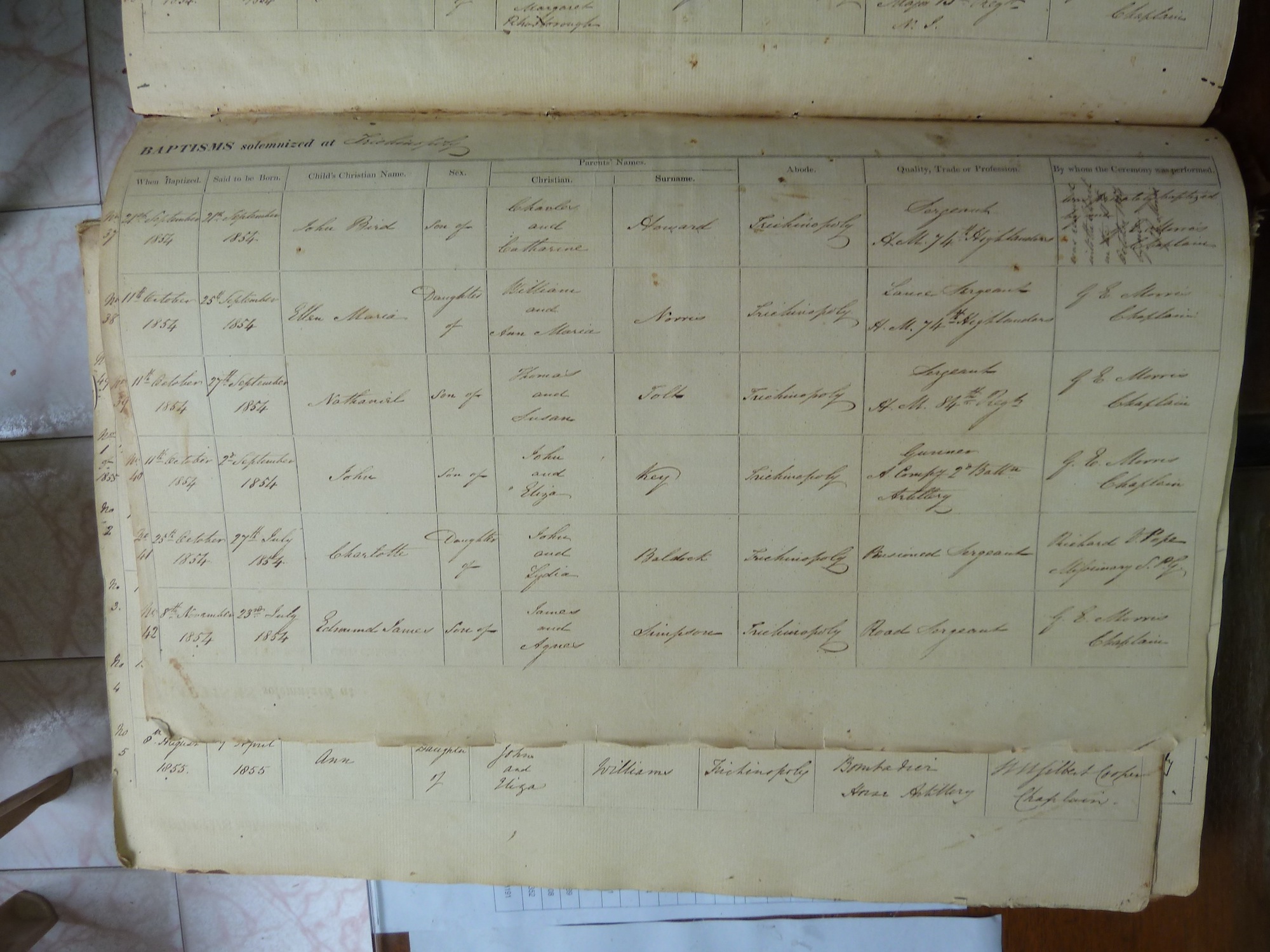 St Johns Church Trichinopoly - Baptismal Registers
