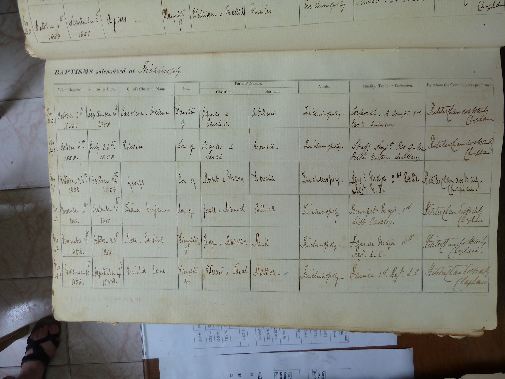 St Johns Church Trichinopoly - Baptismal Registers