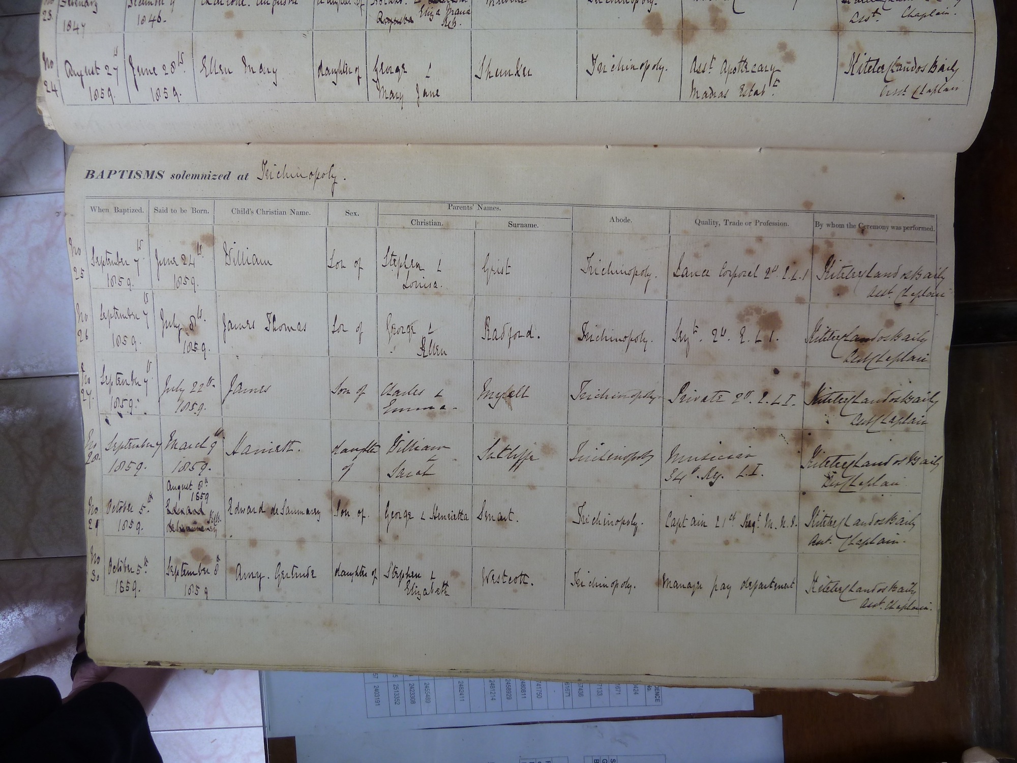 St Johns Church Trichinopoly - Baptismal Registers