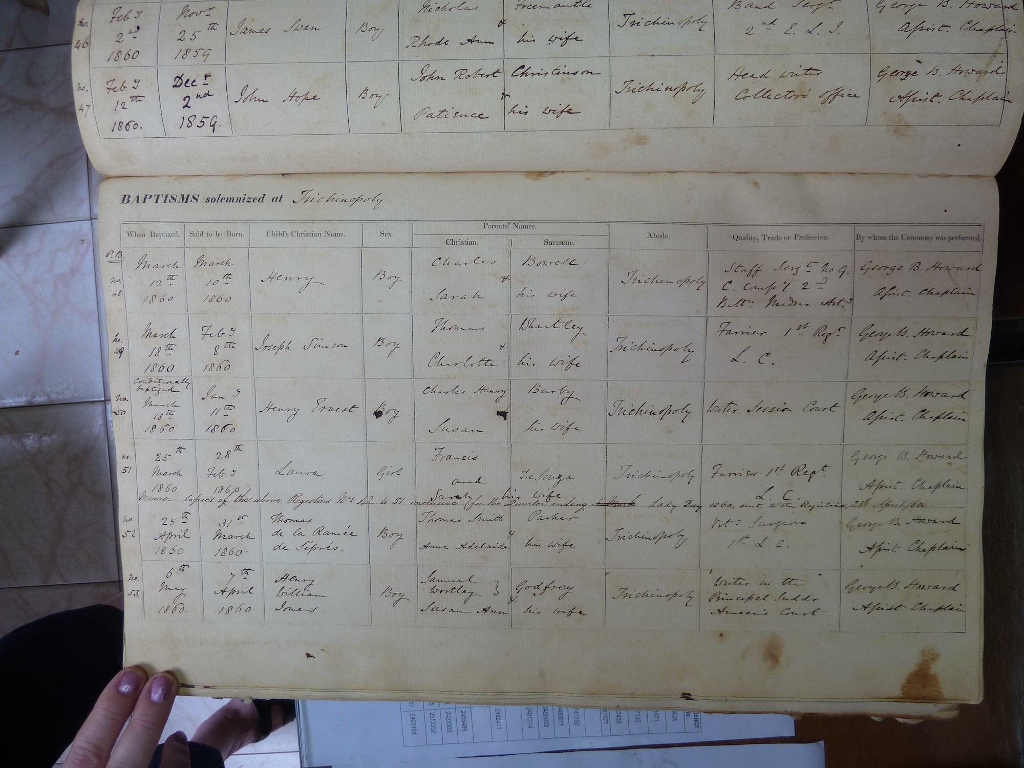 St Johns Church Trichinopoly - Baptismal Registers