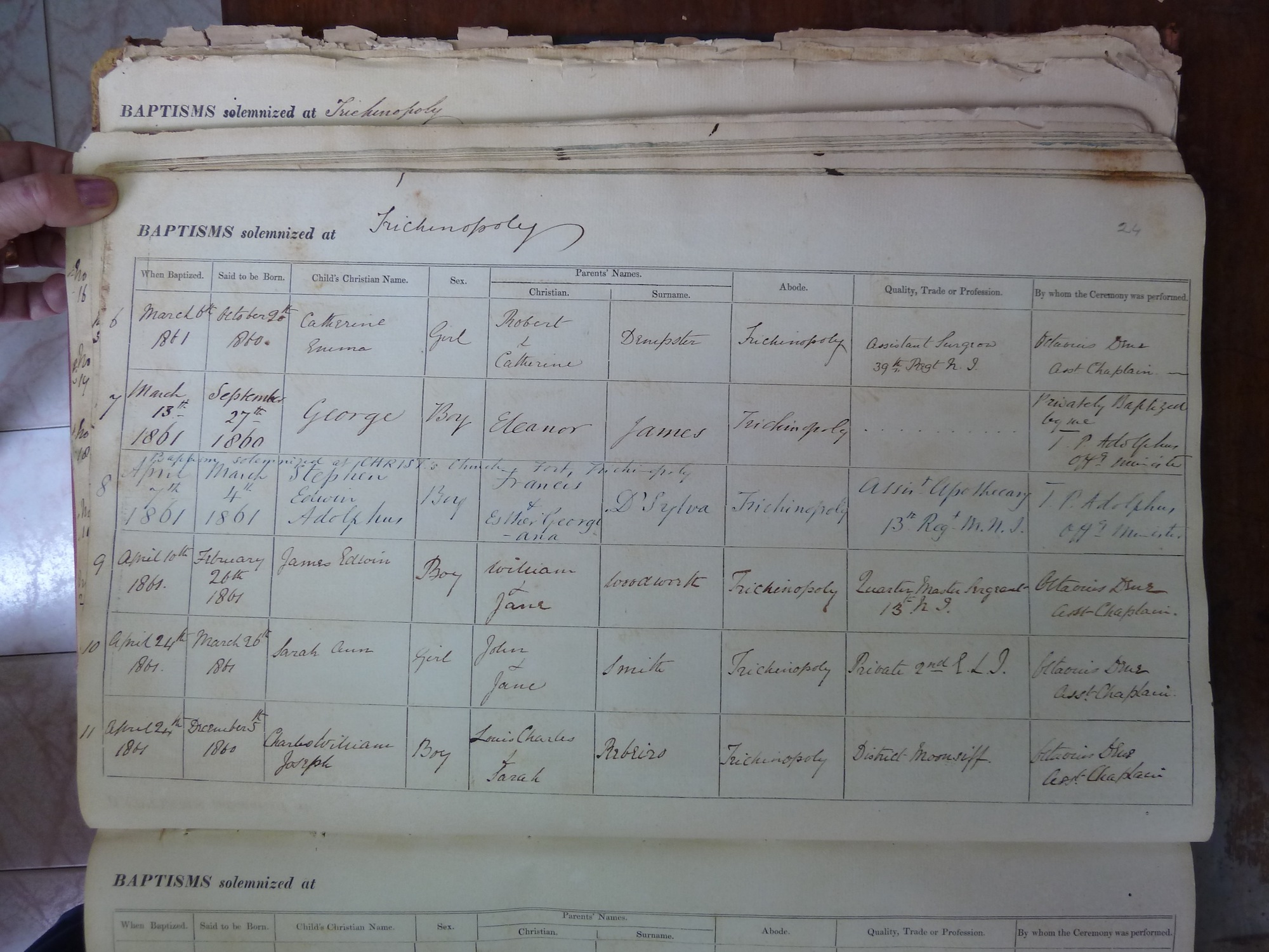 St Johns Church Trichinopoly - Baptismal Registers