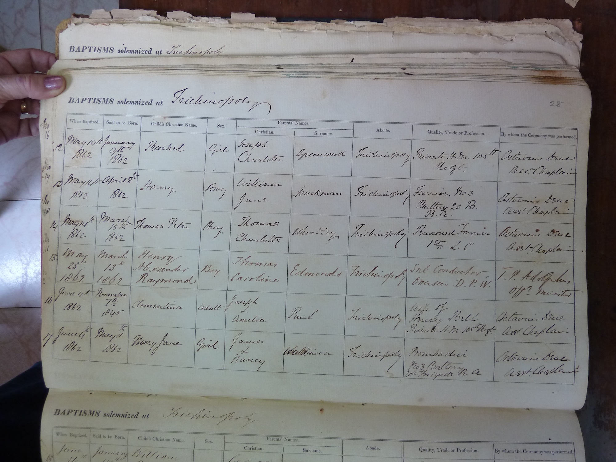 Image title: St Johns Trichinopoly Baptismal Register 1851-1909 - 77 File size: 634,771 bytes