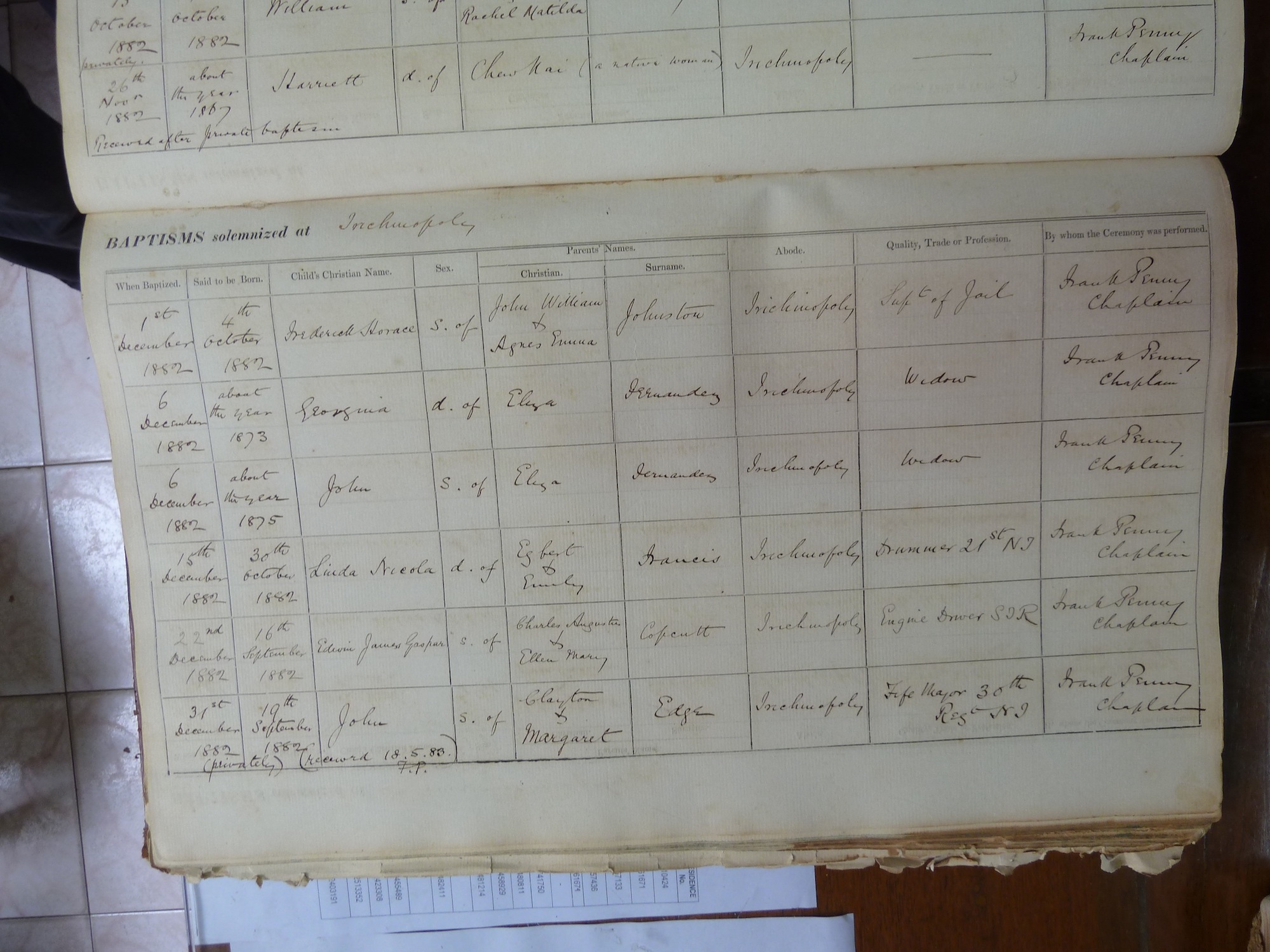 St Johns Church Trichinopoly - Baptismal Registers