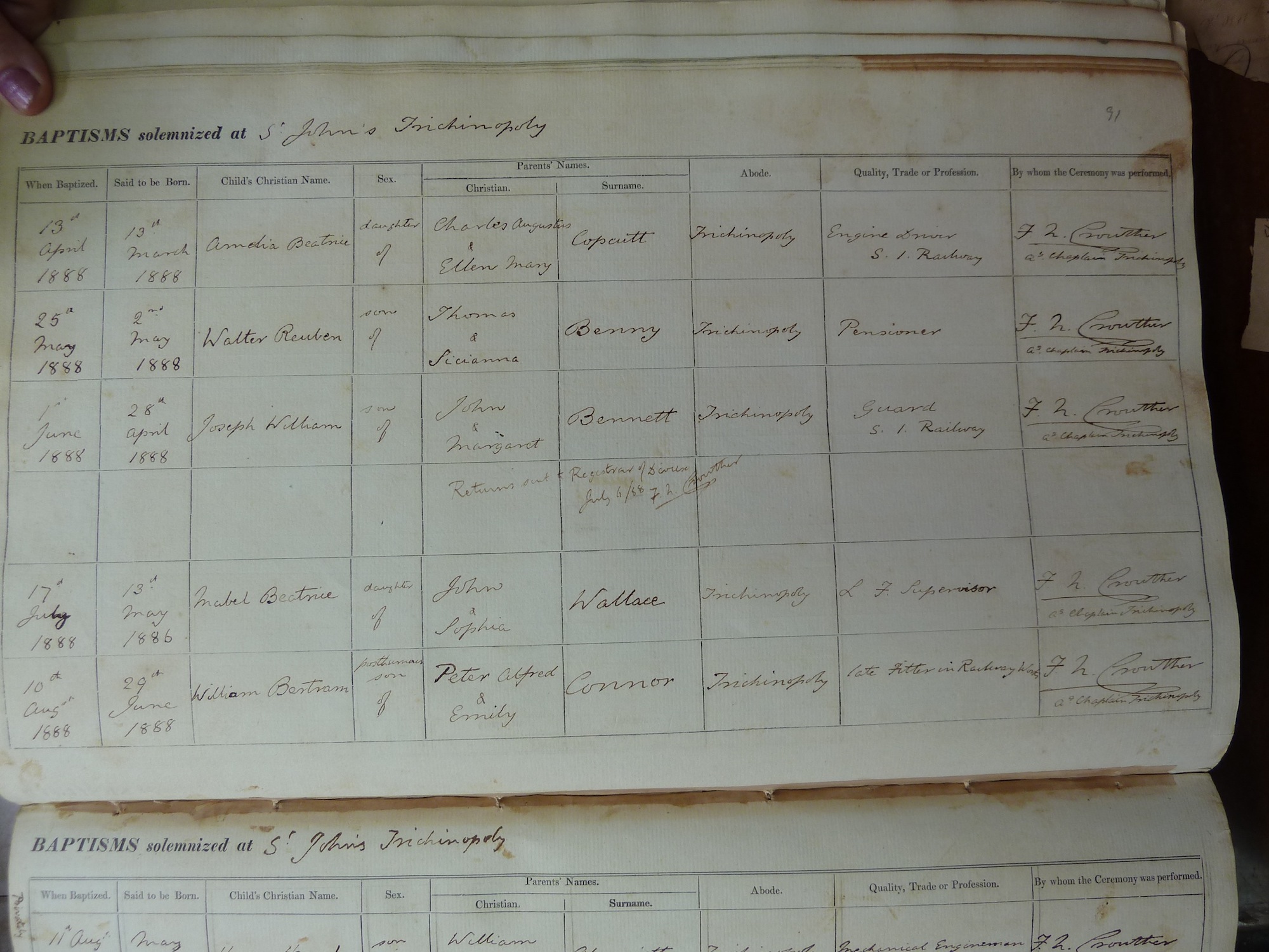St Johns Church Trichinopoly - Baptismal Registers