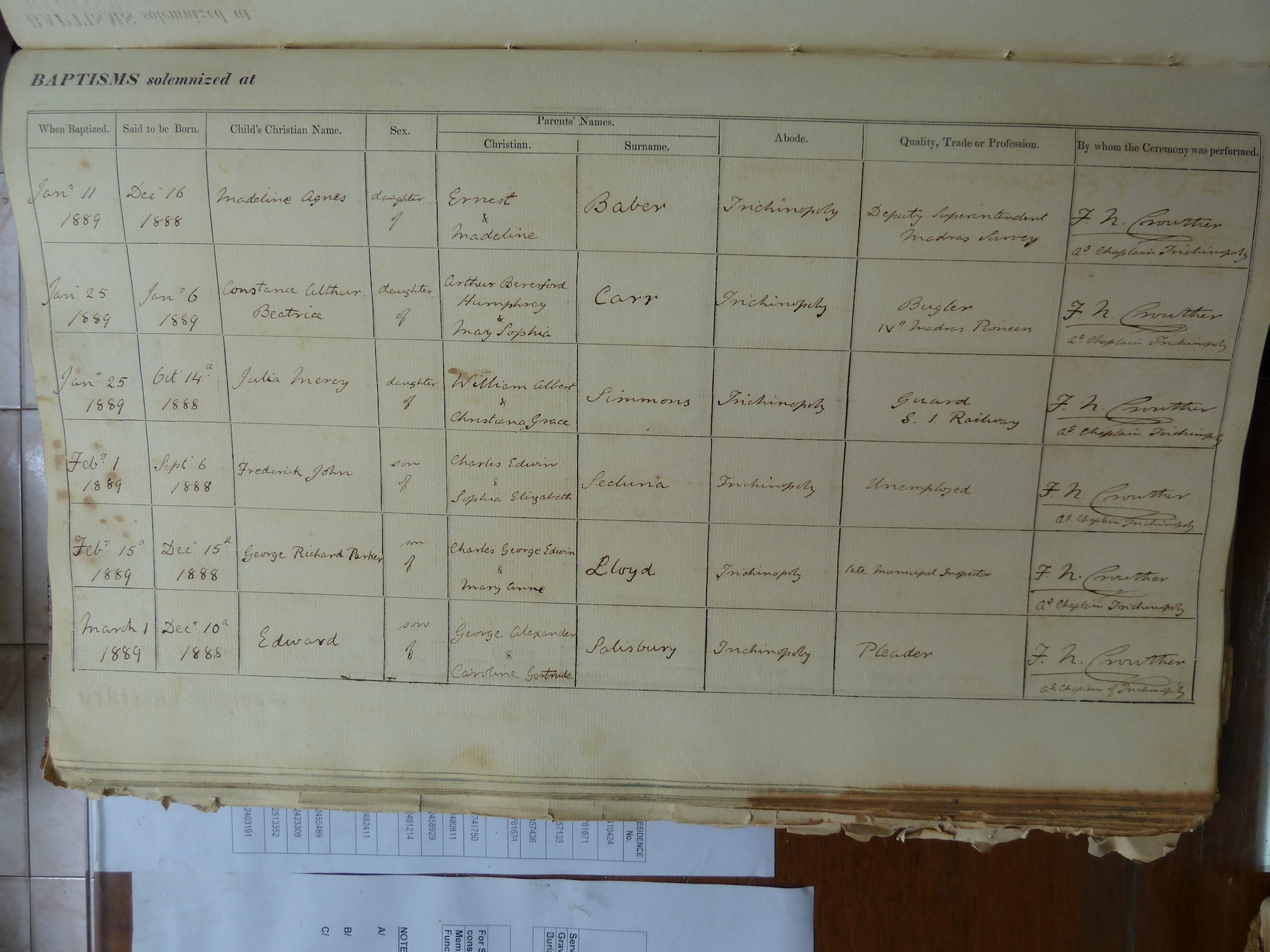 St Johns Church Trichinopoly - Baptismal Registers