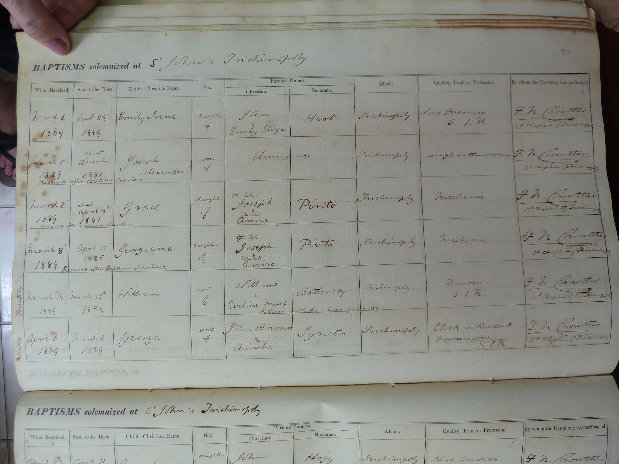 St Johns Church Trichinopoly - Baptismal Registers