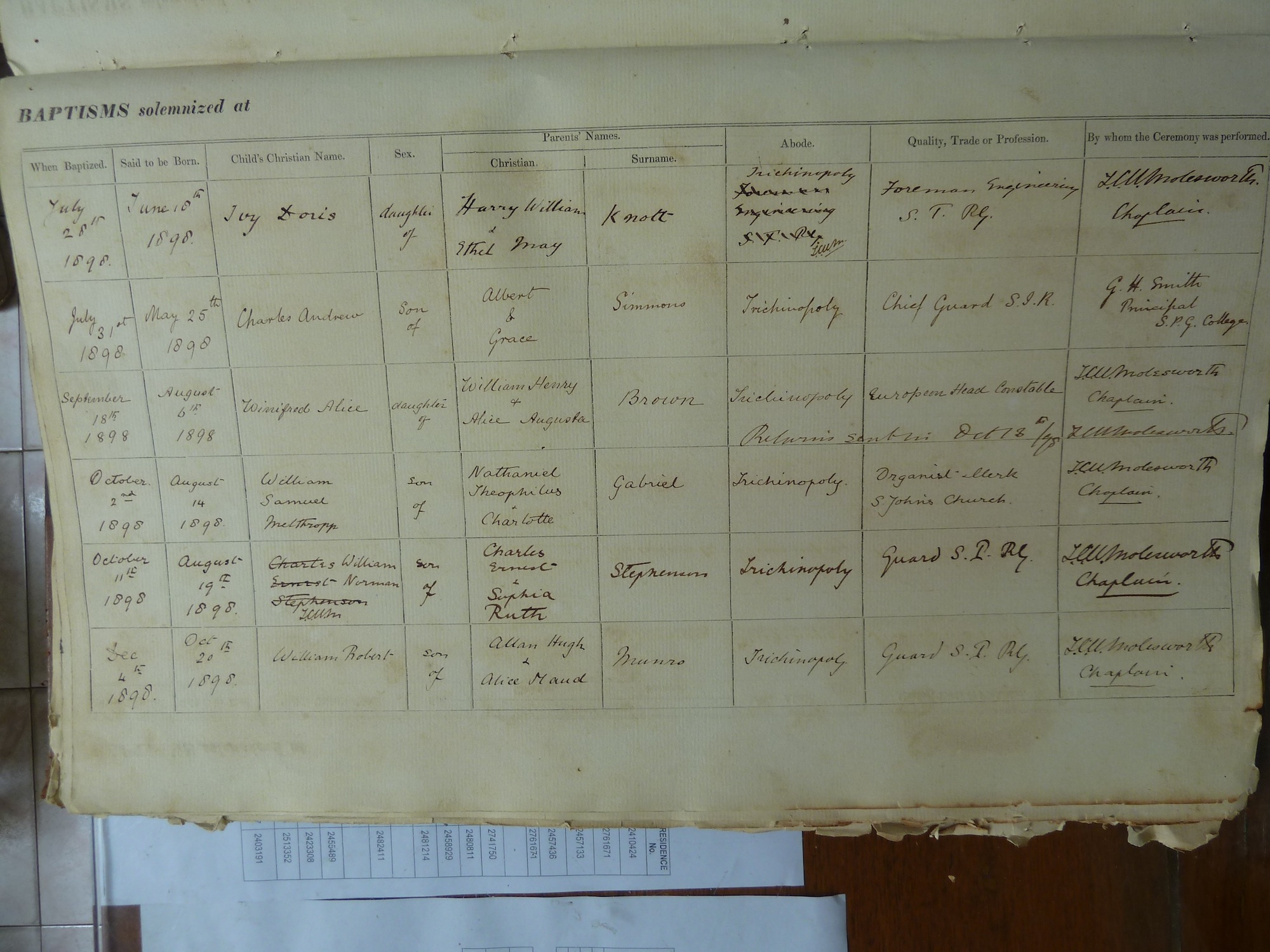 St Johns Church Trichinopoly - Baptismal Registers