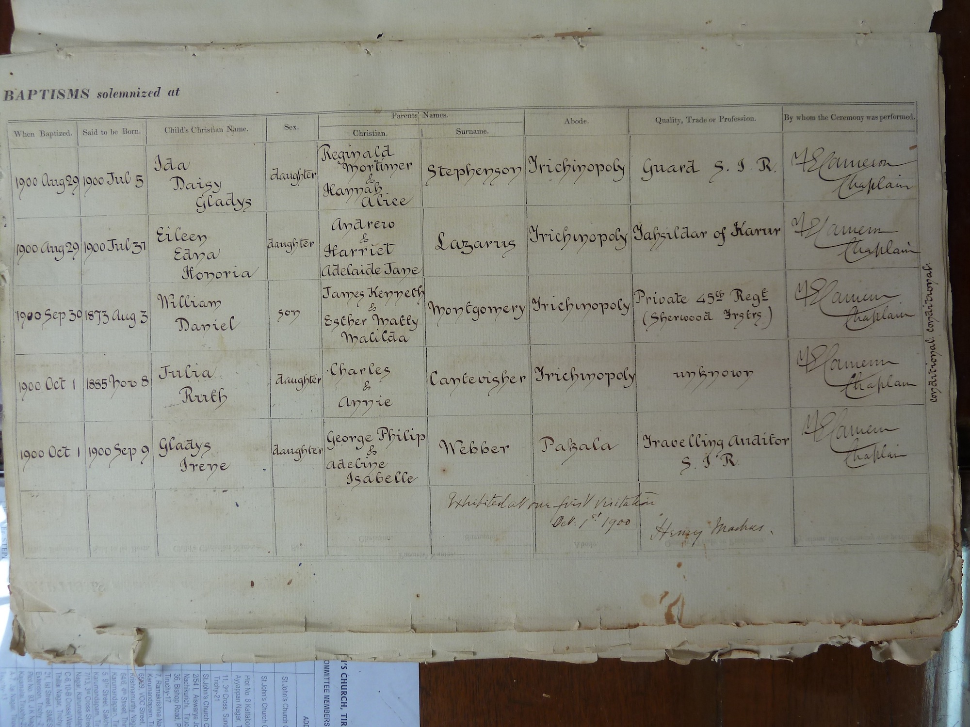 St Johns Church Trichinopoly - Baptismal Registers