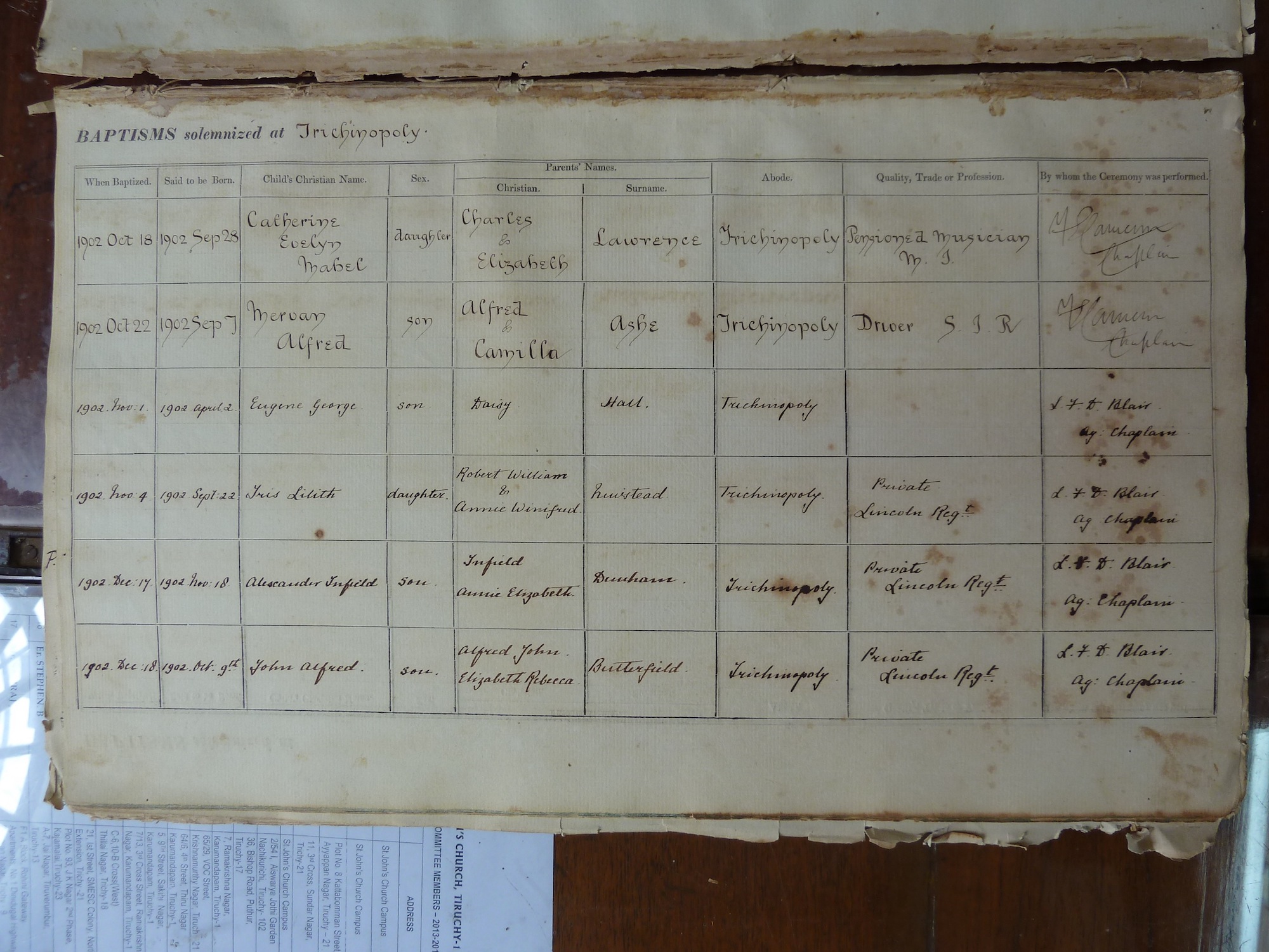St Johns Church Trichinopoly - Baptismal Registers