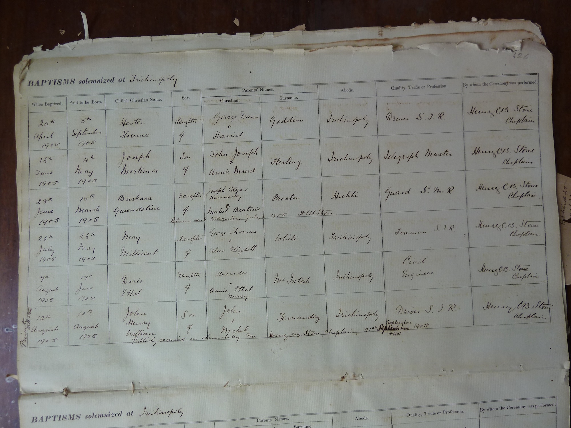 St Johns Church Trichinopoly - Baptismal Registers