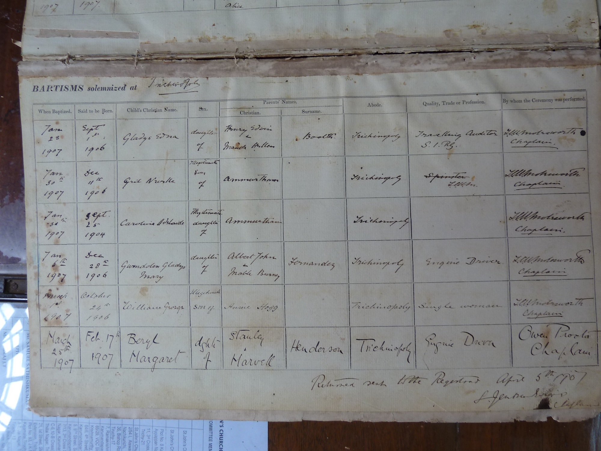 St Johns Church Trichinopoly - Baptismal Registers
