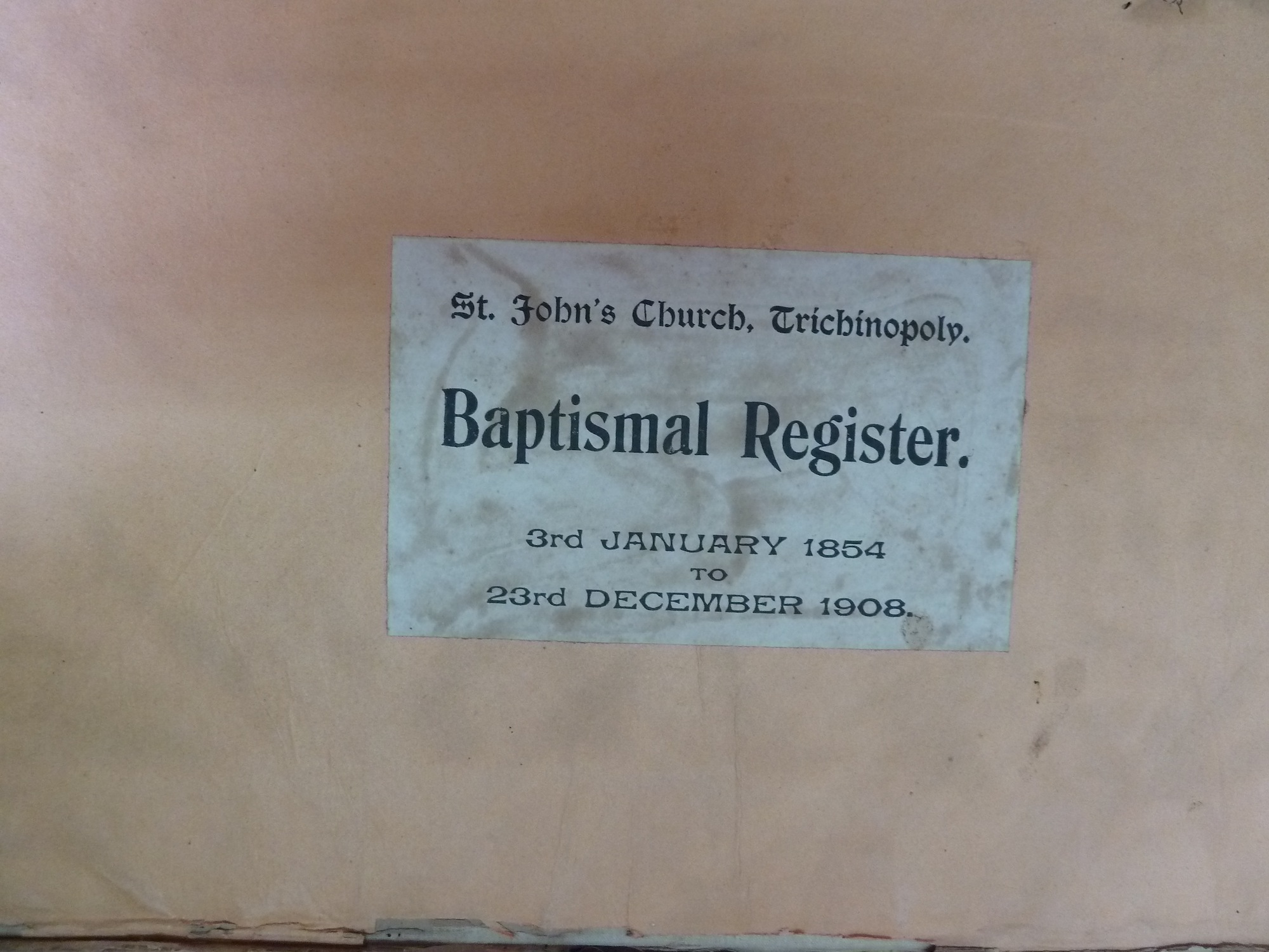 Image title: St Johns Trichinopoly Baptismal Register 1851-1909 - 00 File size: 498,312 bytes