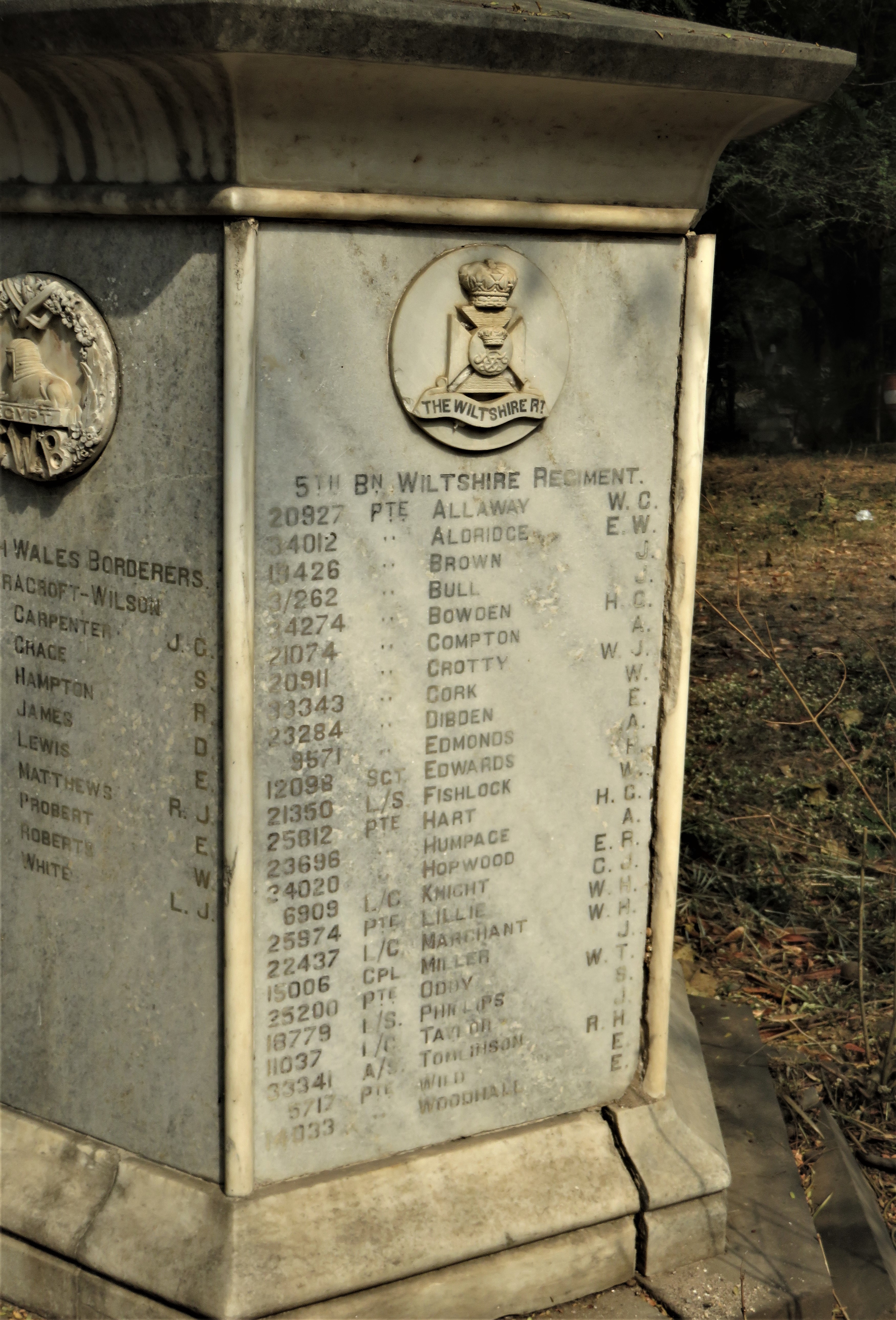Image title: Monument at Caldecot Cemetery, Kirkee: 5th Batn Wiltshire Regt [1] File size: 3,452,133 bytes
