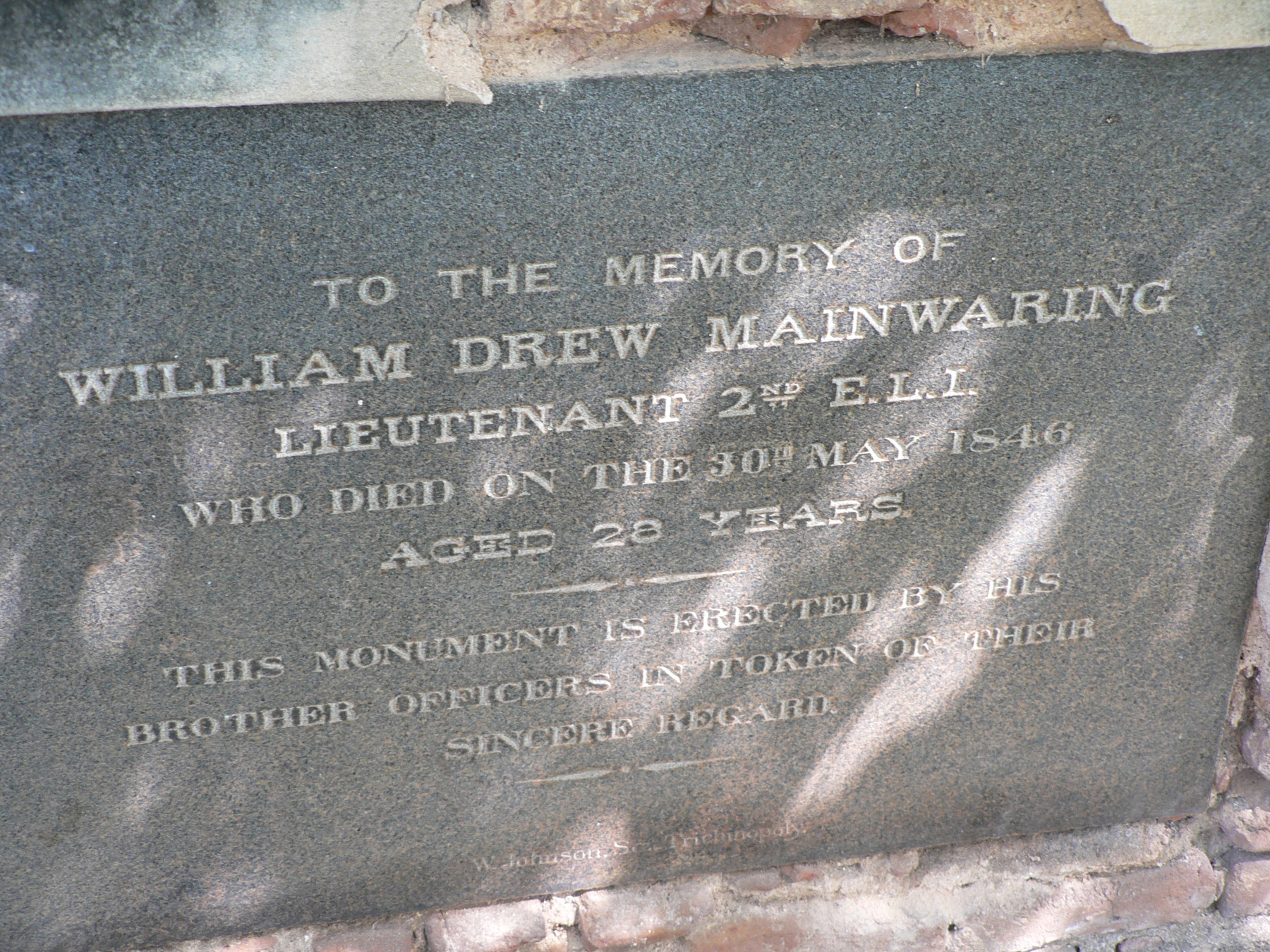 Image title: Mainwaring, William D. Grave at St Johns Cemetery Trichy File size: 1,084,695 bytes