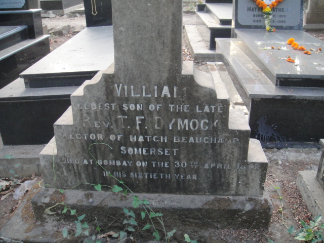 William, Eldest Son of the late Rev. T.F. Dymock, Rector of Hatch Beauchamp, Somerset. Died at Bombay on the 30th April 1892, in his sixtieth year.