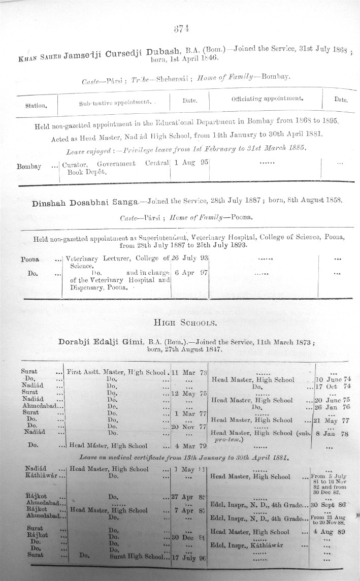 Image title: Bombay Gazetted Civil Servants 1899 Page - 0374.JPG