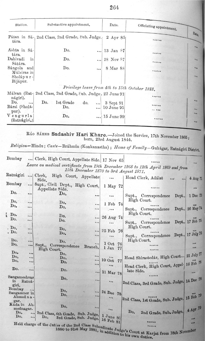 Image title: Bombay Gazetted Civil Servants 1899 Page - 0264.JPG