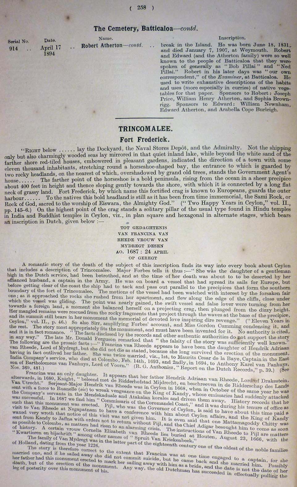 Image title: Tombstones and Monuments in Ceylon by J. Penry Lewis, C.M.G. images - Page_258.jpg File size: 306,724 bytes |