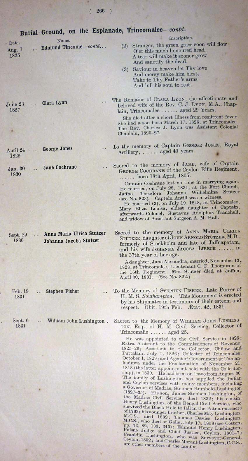 Miscellaneous Monument Inscriptions
