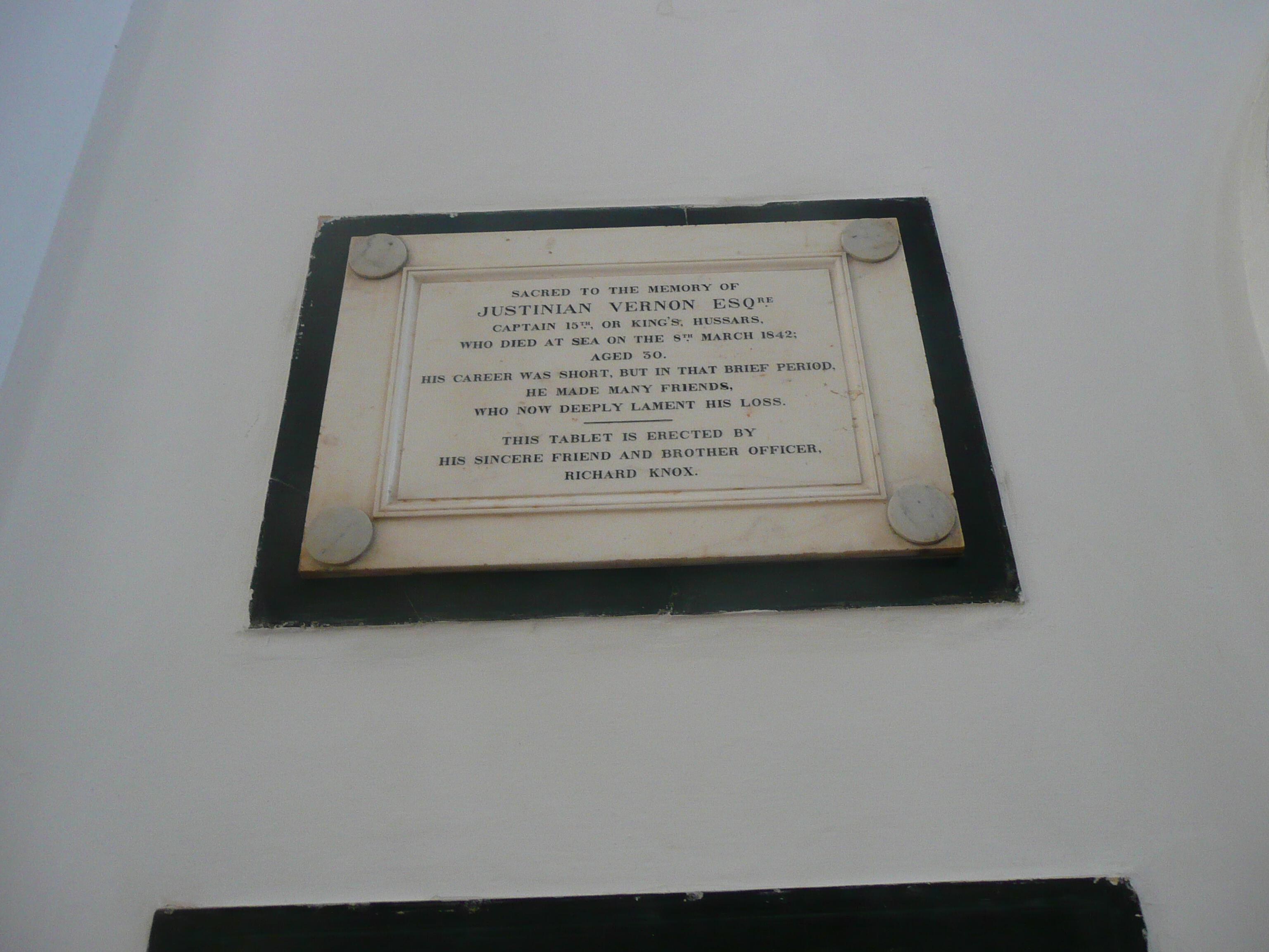 Justinian Vernon, Memorial St Marks Cathedral Bangalore