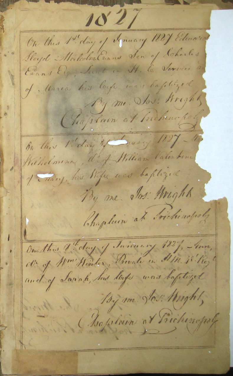 Image title: St Johns Church Baptism Register 1810-1827 images - Trichy-St-Johns1827-Baptisms-1.jpeg File size: 174,991 bytes |