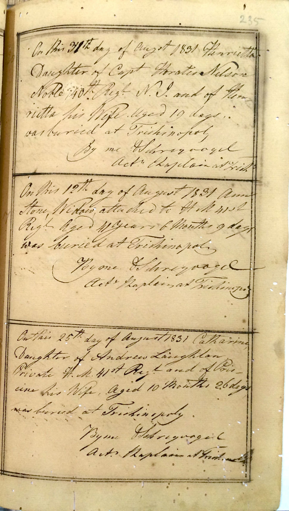 St Johns Church Trichinopoly - Burial Registers