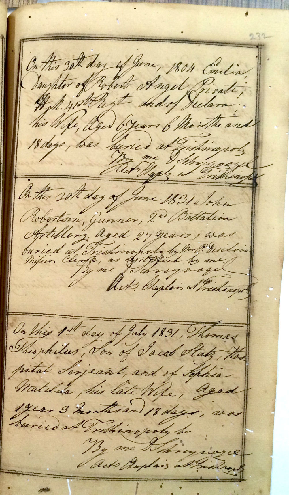 St Johns Church Trichinopoly - Burial Registers