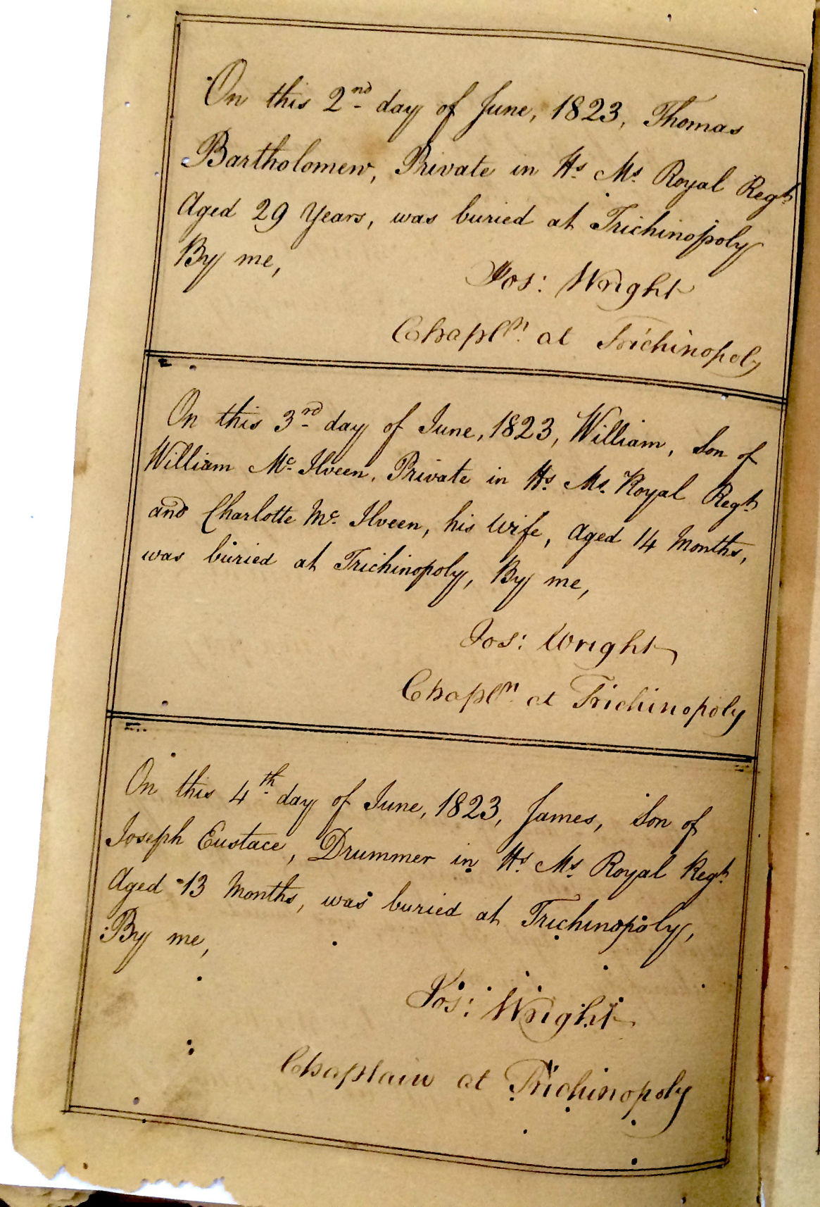 St Johns Church Trichinopoly - Burial Registers