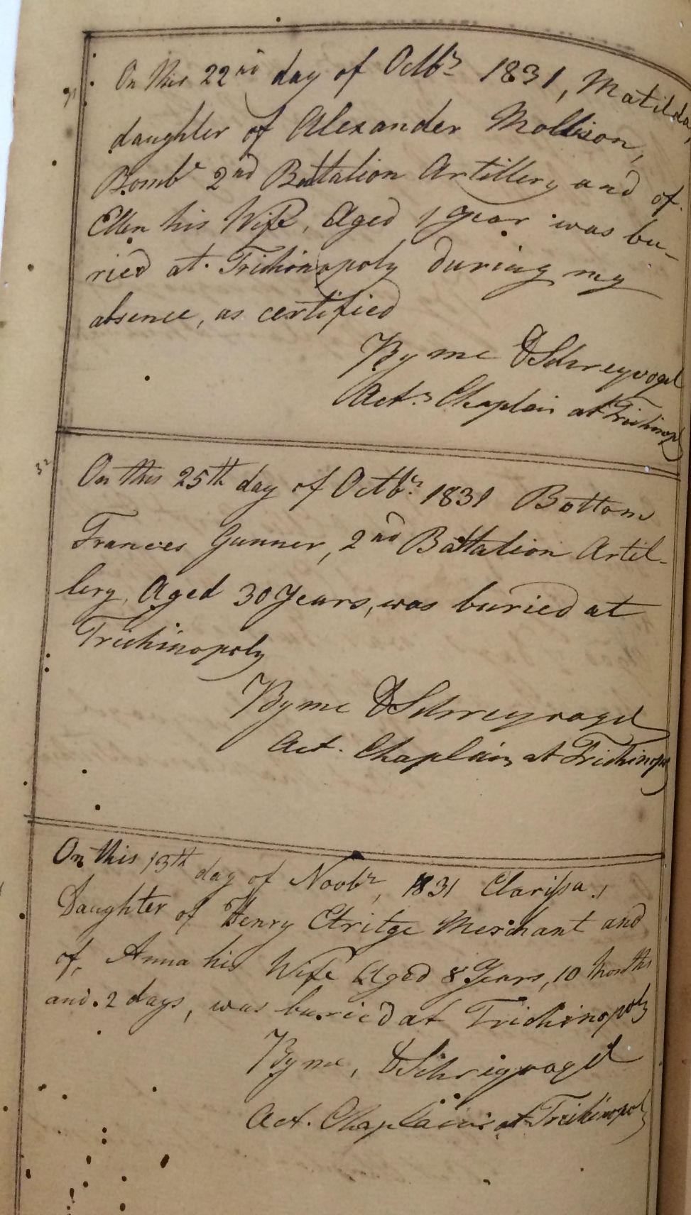 St Johns Church Trichinopoly - Burial Registers